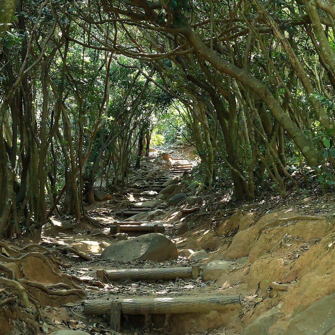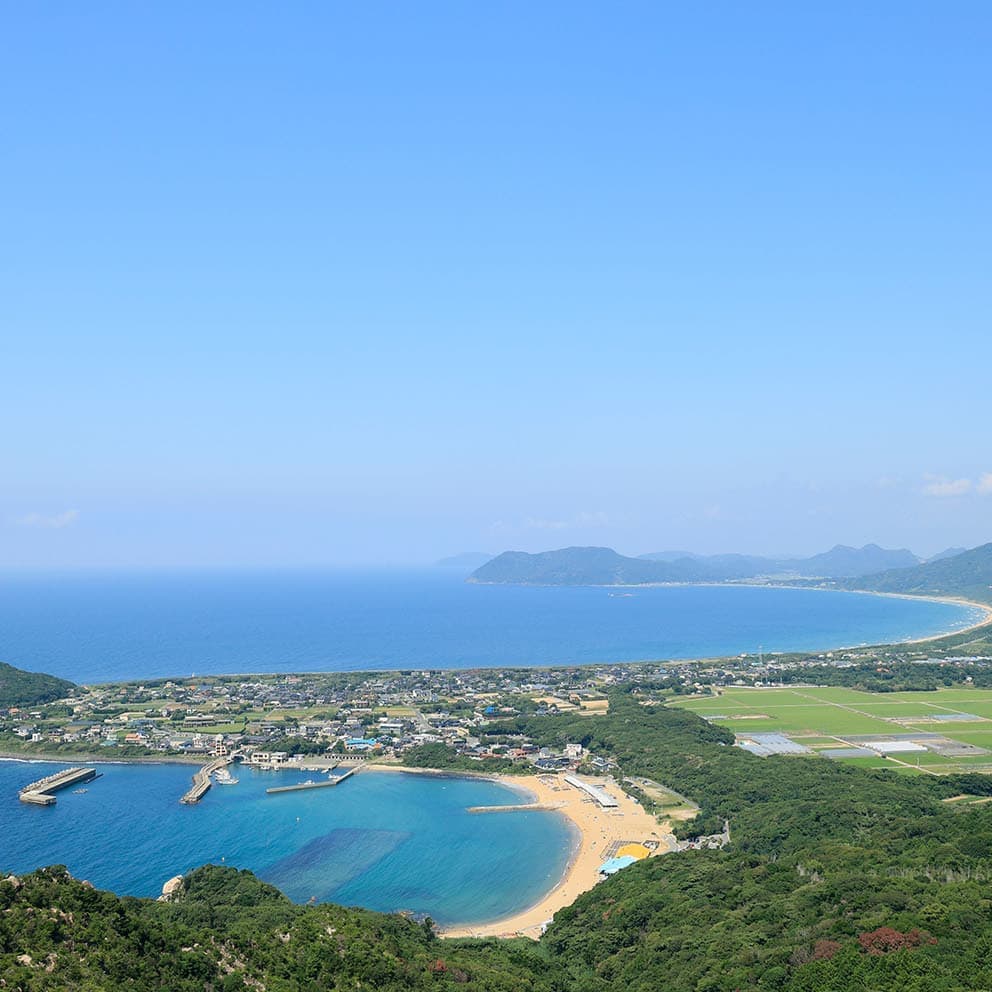 芥屋の大門(けやのおおと)は糸島の北西端にあり、日本三大玄武洞の中でも最大のものです。展望台へ続く森への道は木がトンネルのようになっていており、フォトウェディング人気のフォトスポットです。
